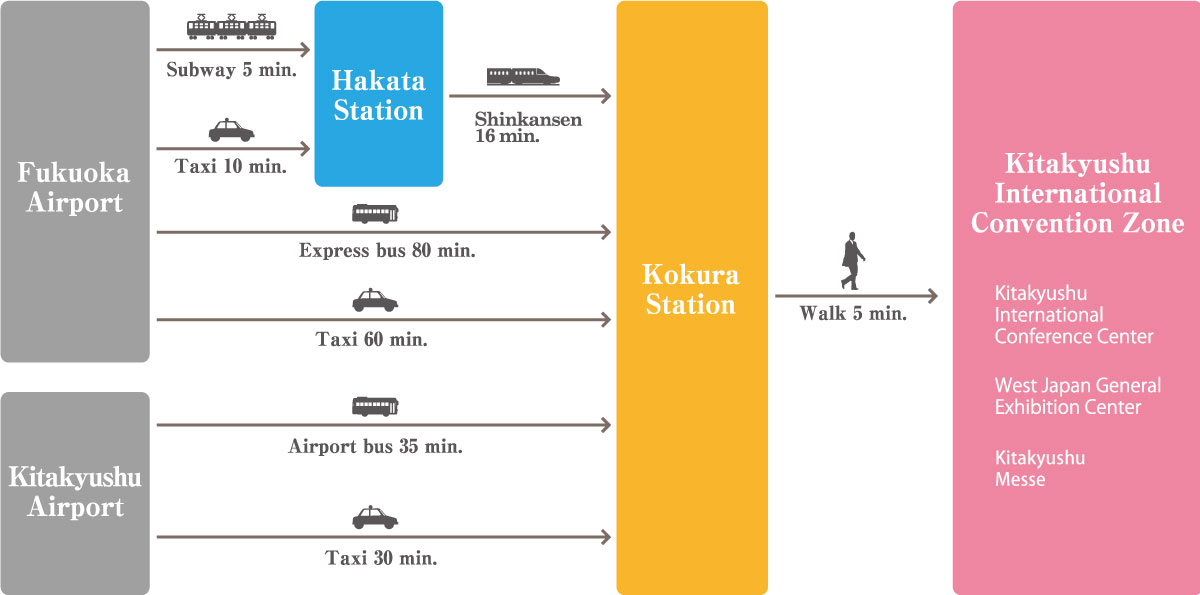 Kitakyushu International Convention Zone is directly connected to the bullet train exit of JR Kokura Station, only five minutes away on foot. Featuring an international conference center, exhibition center, and hotels, it is an ideal location for large-scale conventions. It is also conveniently located only 30 minutes away by subway and bullet train from Fukuoka Airport, one of Japan’s busiest hubs. Kitakyushu’s reasonable costs that are decidedly lower than other major cities in Japan make this an attractive destination for meetings and events of all kinds.