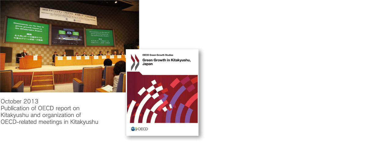 Green growth is a balance between environmental improvement and economic growth. Based on two years of detailed studies and research, OECD announced the publication of a report in the OECD Green Growth Studies series, “Green Growth in Kitakyushu, Japan” (English version published in May 2013; Japanese version published in October 2013).